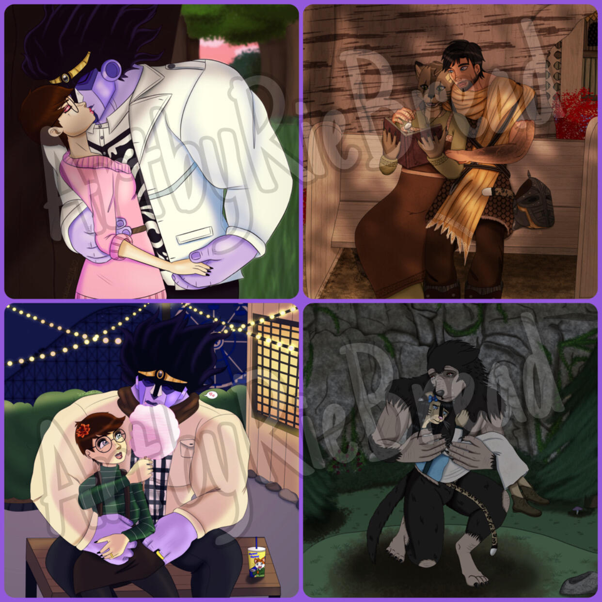 ☆ If the examples provided aren't enough, feel free to look through my gallery on my website for more examples of my work.☆ By commissioning me, you automatically agree to my terms of service.☆ I try to do my commissions as soon as possible. Though I ask you to please be patient with me. I struggle being able to work quickly and hunched over a tablet, as I was injured at work in 2021 and I suffer with CRPS (Chronic Regional Pain Syndrome) which feels like pins and needles 24/7 and induces sharp stinging pains when I walk around.Don’t hesitate to get in contact with me if I seem to be taking a while. Sometimes I forget stuff because I either have a lot on my plate, or depression is really taking hold of me. I never EVER wish to make anyone feel like I'm not gonna do their commission. But please DO NOT rush me.☆ With this being said, if you wish to commission something from me as a gift for someone else for a birthday, wedding, holiday gift, etc. PLEASE let me know at least 2 weeks in advance so I have the ability to get it done in time.